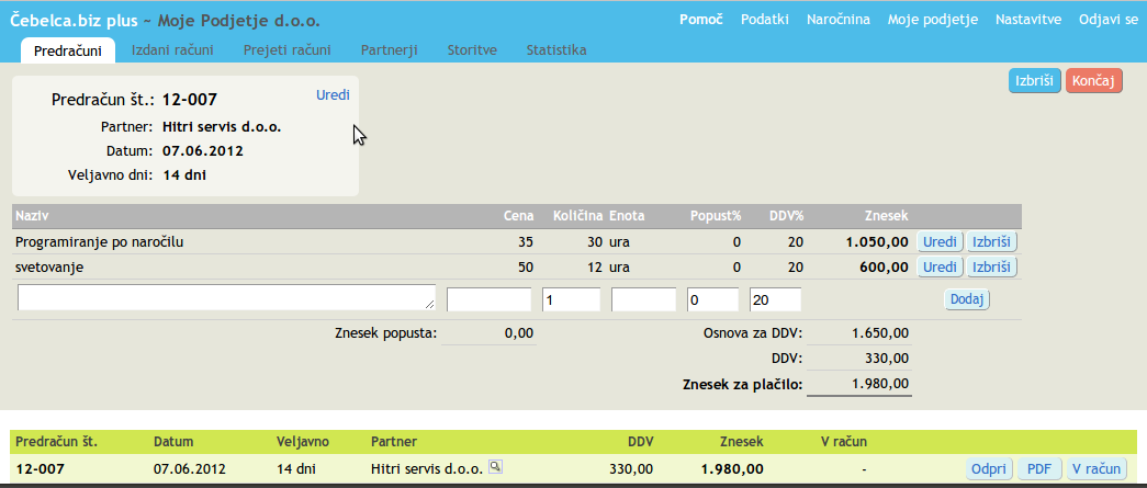 - Kako naredim ponudbo ali predračun?