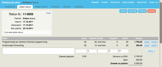- Kako vnesti storitve, ki bodo na računu?