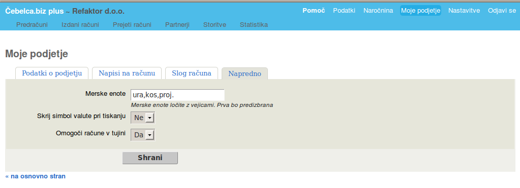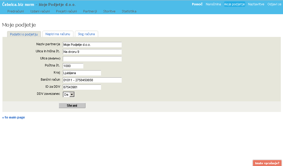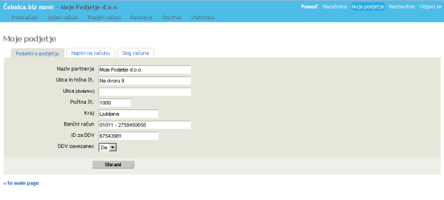 - Nastavitve > Podatki o podjetju