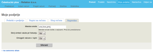 - Nastavitve pri tistih, ki pošiljate eRačune