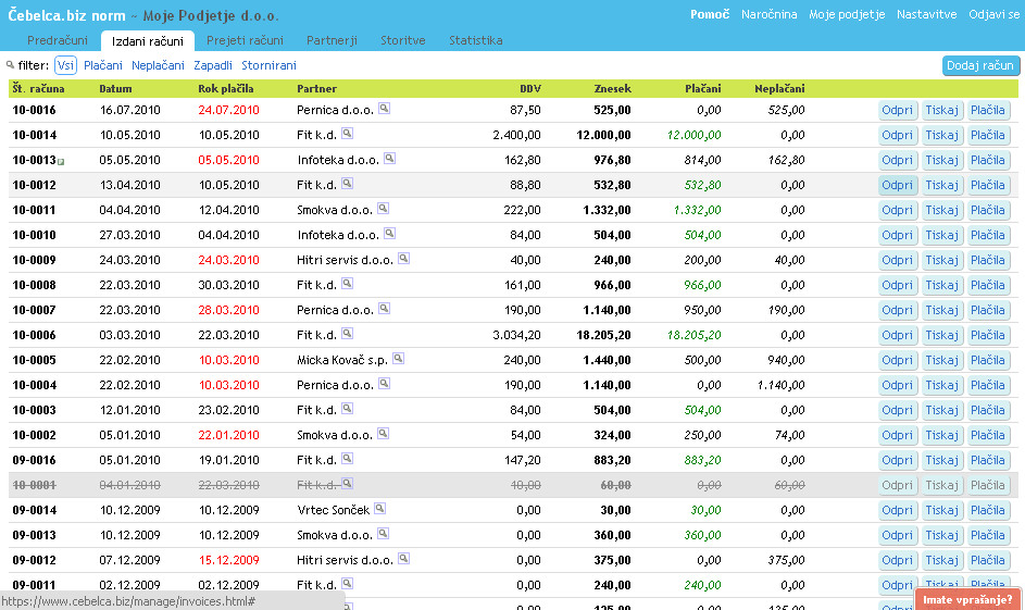 V primeru težav partnerja popravite podatke za partnerja, enako pri samem računu. Pri vaših nastavitvah pa je nujen dodaten korak, ker si je račun zapomnil nastavitve iz trenutka nastanka računa. To rešite s 3 kliki. Prosim preberite si drugo poglavje pri rubriki Nastavitve.